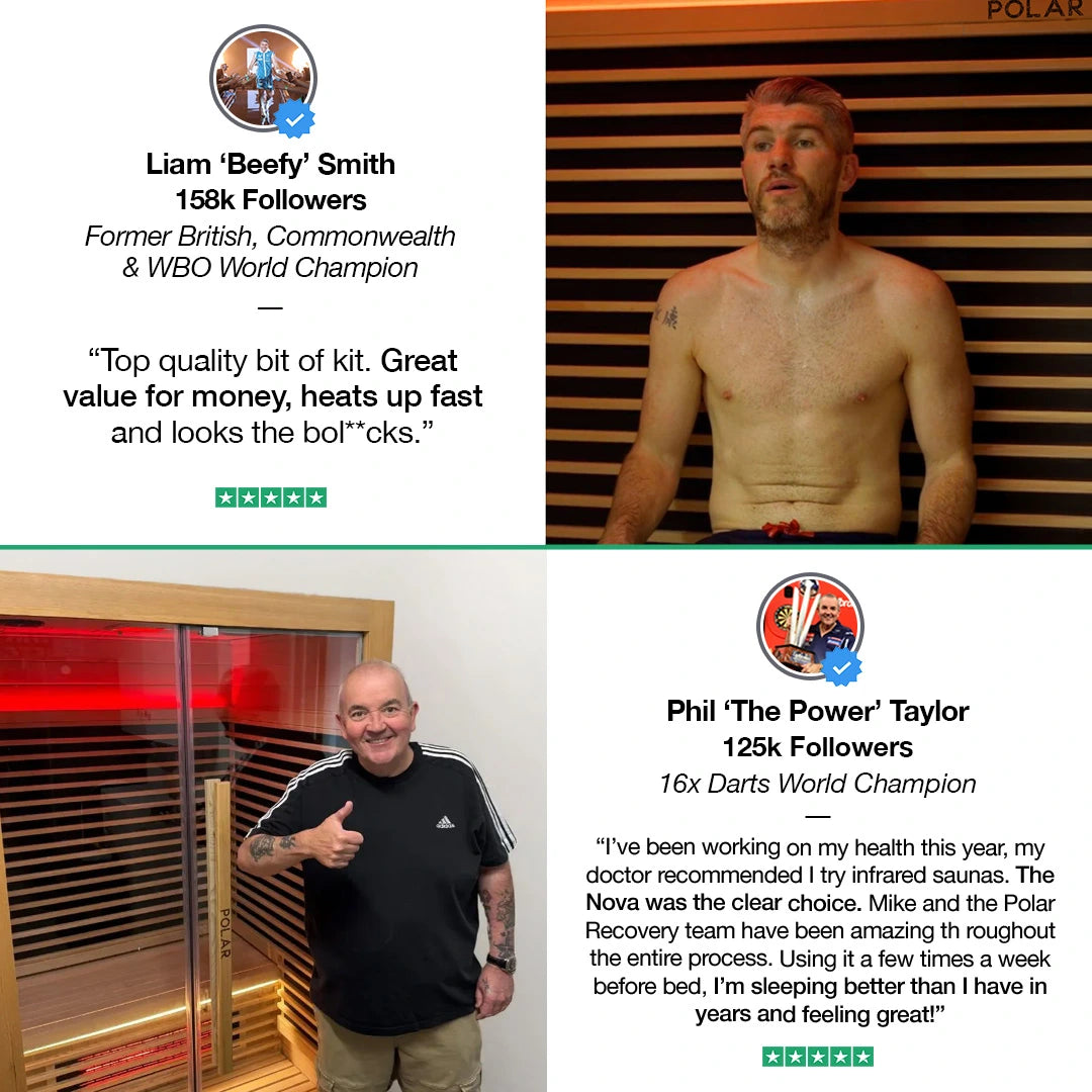 Delighted with the Nova2 Sauna and the healthy benefits which it offers. Customer service has been excellent and the team that delivered / assembled the sauna did an awesome job - both guys lived up to the Polar Recovery brand. We look forward to many years of using the sauna and the long term benefits that it offers.